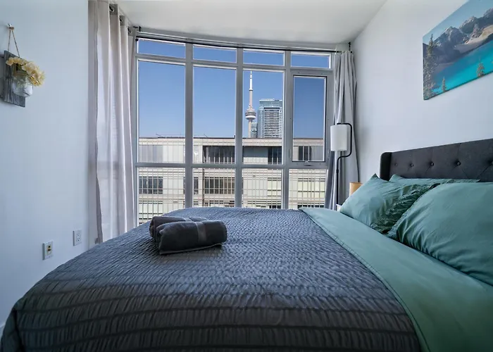 Kompleks sportowo-widowiskowy Scotiabank Arena i Muzeum Nadawcy Radiowo-Telewizyjnego CBC znajdują się odpowiednio w odległości mniej niż 1 km i nie więcej niż 1 km od apartamentu o powierzchni 74 m^2. Stadion Rogers Centre znajduje się w umiarkowanej odległości od tego apartamentu.